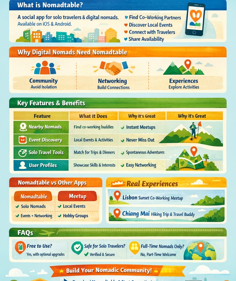Discover why Nomadtable is the must-have app for digital nomads and solo travelers. Connect, work, and explore with ease anywhere in the world.
